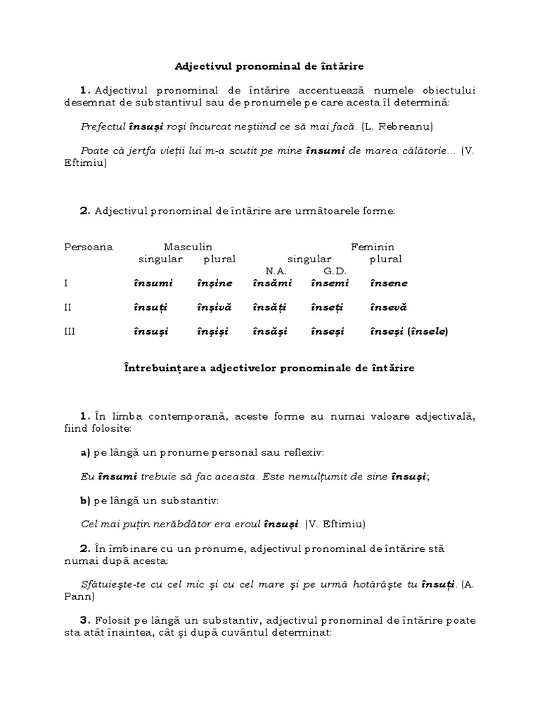 Adjectivul Pronominal De Intărire Exemple Dragos Serban