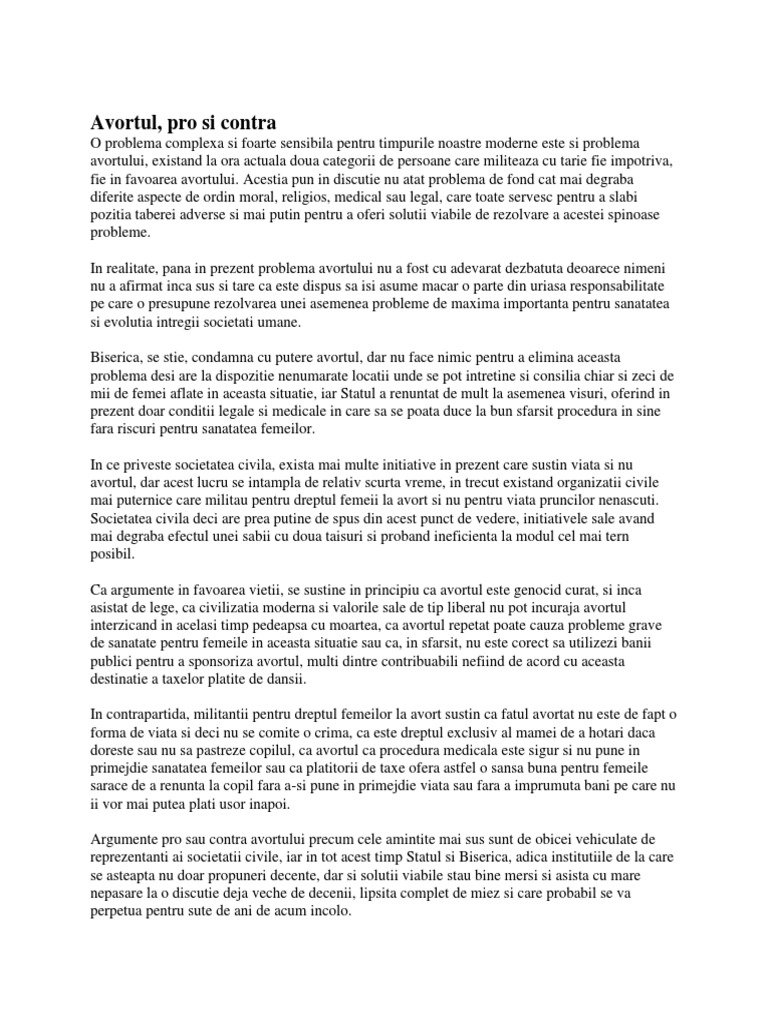 Referat Avortul Argumente Pro Si Contra 290270 Graduo