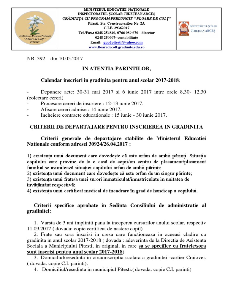 Calendarul Inscrierilor La Gradinita Pentru Anul Scolar 2017 2018 Micul Print