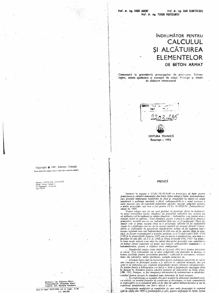 Indrumator Pt Calculul Si Alcatuirea Elementelor Din Ba 1992 Radu Agent 1 Pdf