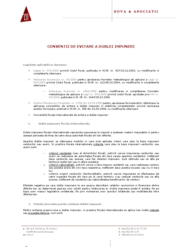 Conventii De Evitare A Dublei Impuneri
