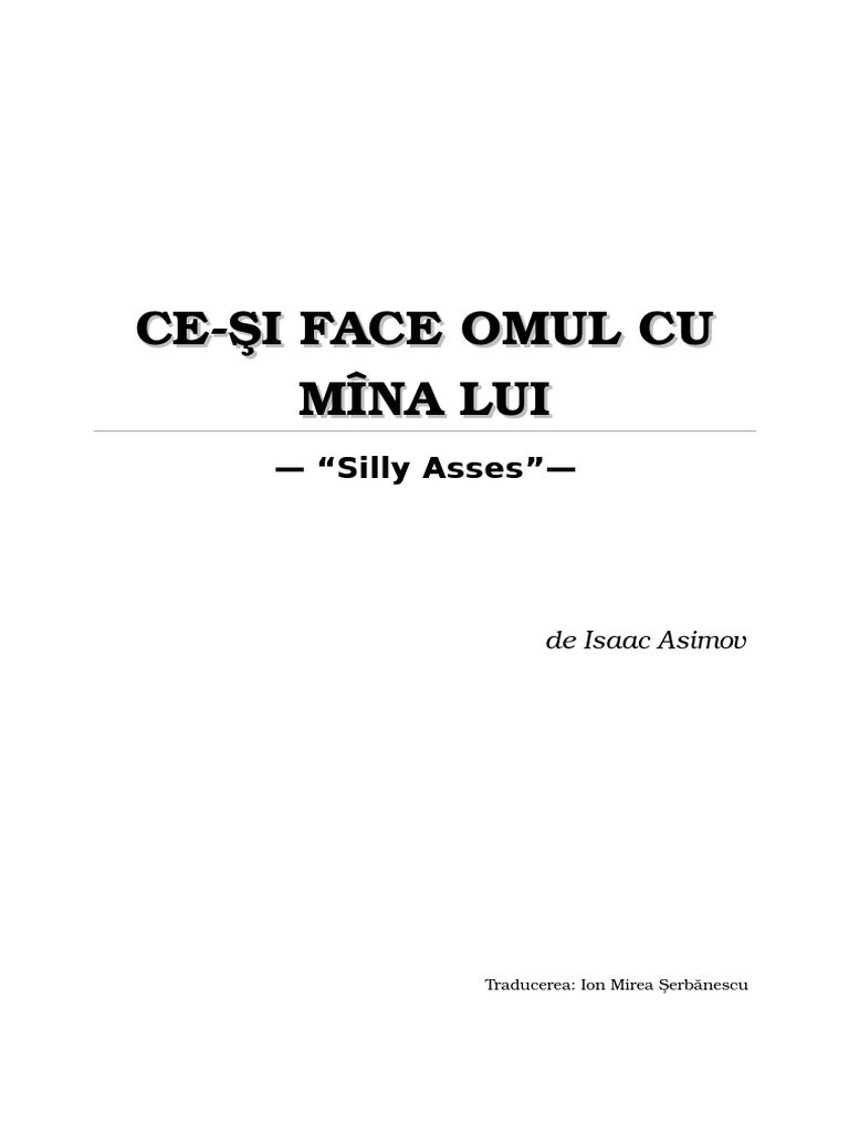 Dicţionar Explicativ Al Banalităţii Cotidiene Isaac Asimov Ce Si Face Omul Cu Mana Lui O Traducere Delicată A Titlului Original Silly Asses