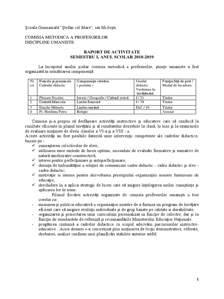 Raport Comisie Metodică Profesori Umaniști Sem I 2018 2019 Docx
