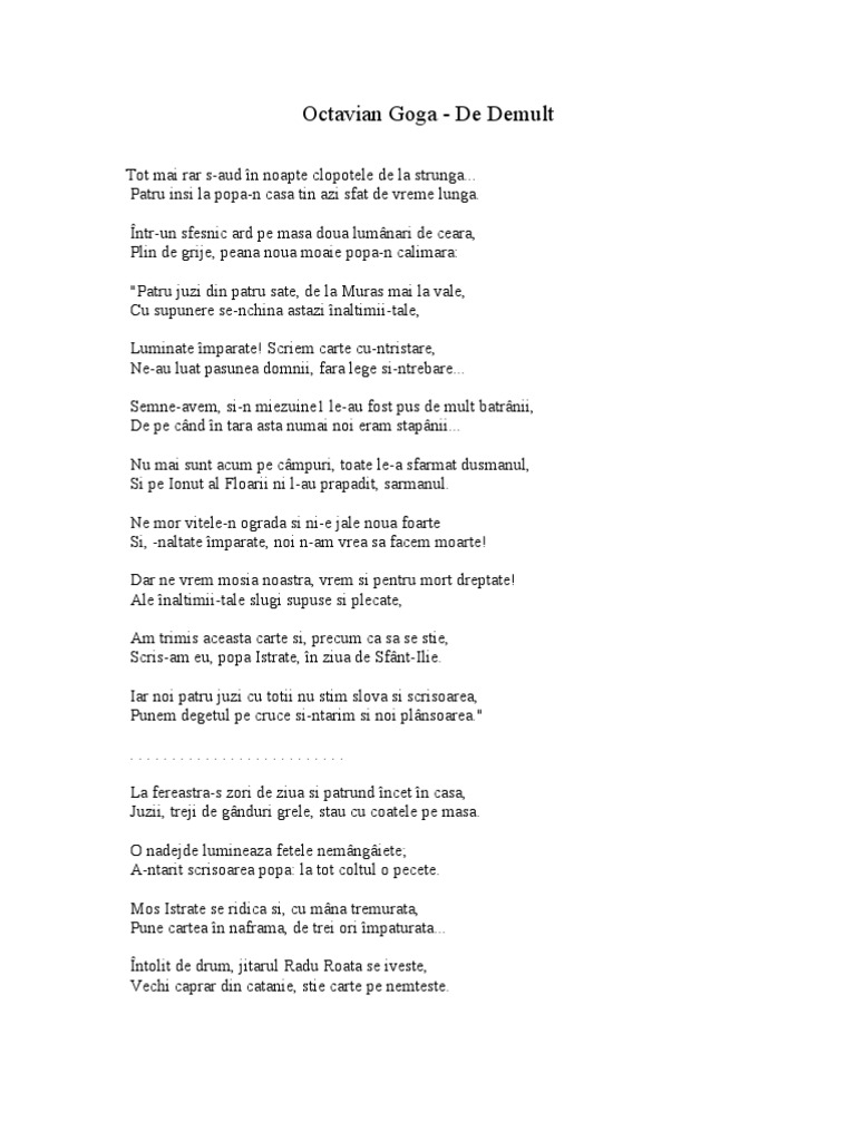 Octavian Goga De Demult Doc Prelungiri Ale Clasicismului U015fi Ale Romantismului De Demult Octavian Goga Repere Introductive Ceea Ce Caracterizeaz U0103 Course Hero