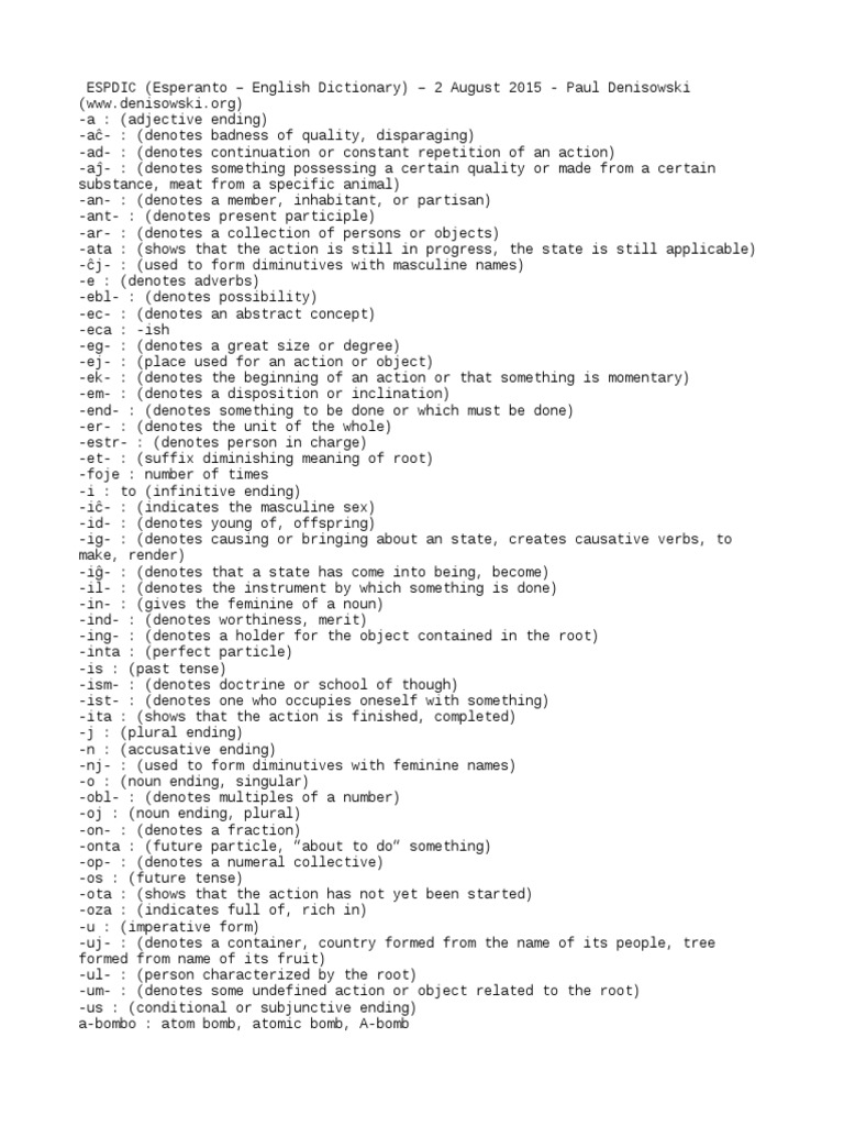 Esperanto Dictionary Word File Adultery Aspirin