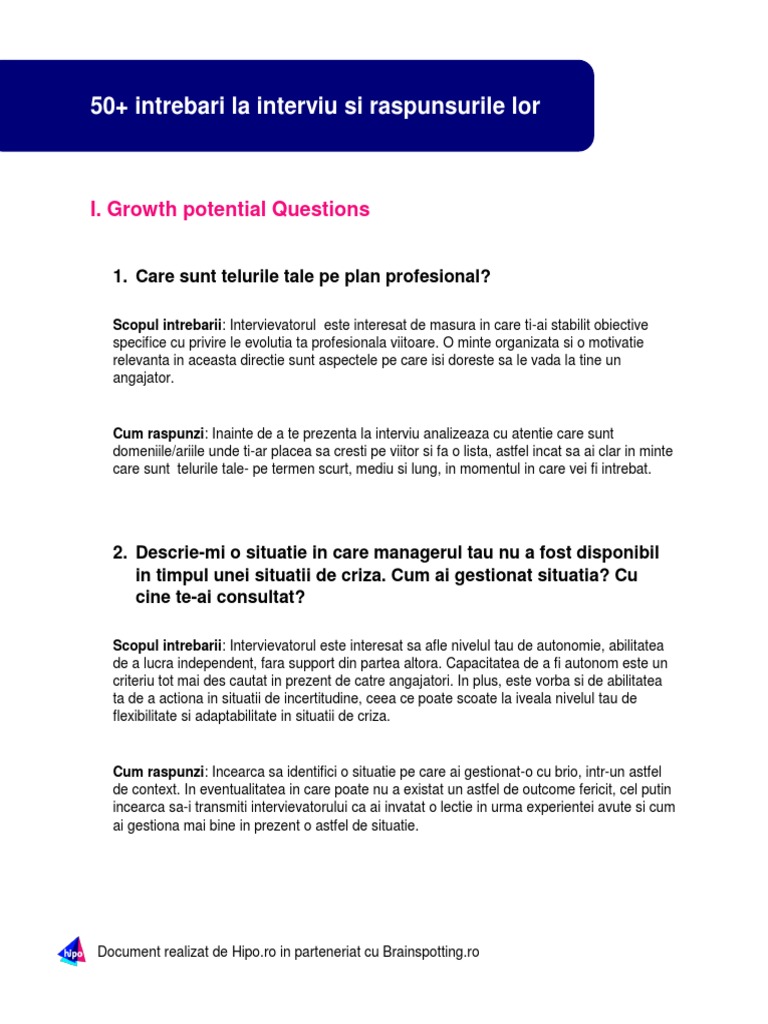 50 Intrebari Raspunsuri Interviu Angajare Pdf