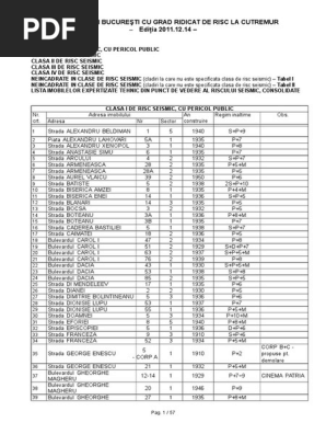 Lista Cladirilor Bucuresti Grad Ridicat Risc Seismic Editia 2011 12 14 Romania
