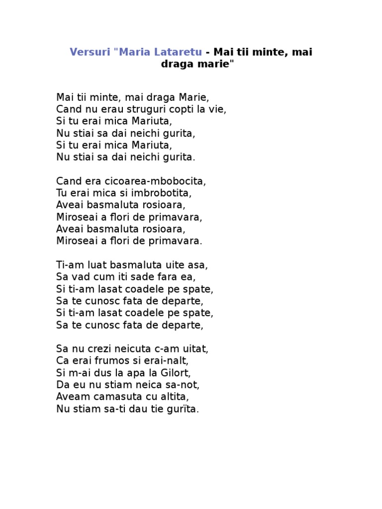 Avatare Recomandari Emisiuni Si Site Uri Maria Lataretu Mai Tii Minte Mai Draga Marie Audio Si Versuri