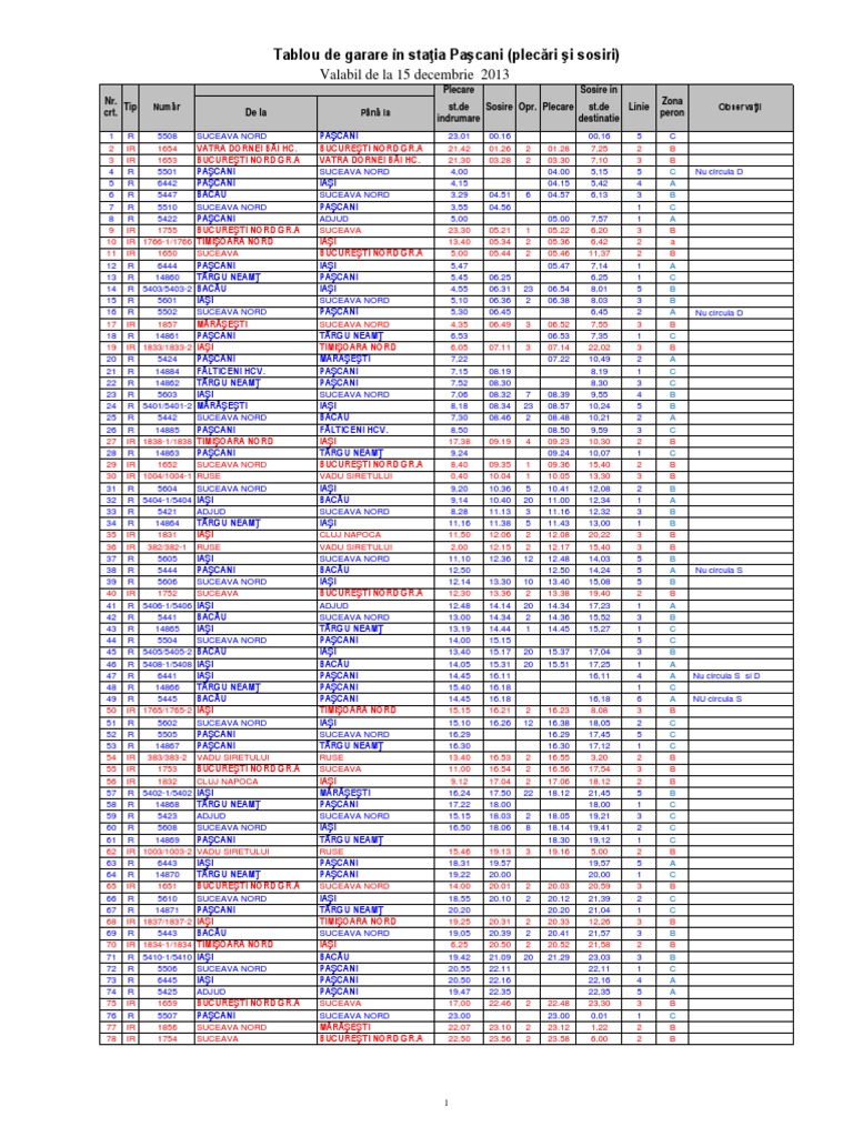 Tabel Mersul Trenurilor Din Gara Pascani Valabil Din Data 01 06 2018 Jurnalul Regional