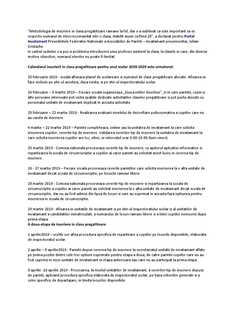Metodologia De Inscriere In Clasa Pregatitoare 2019 2020