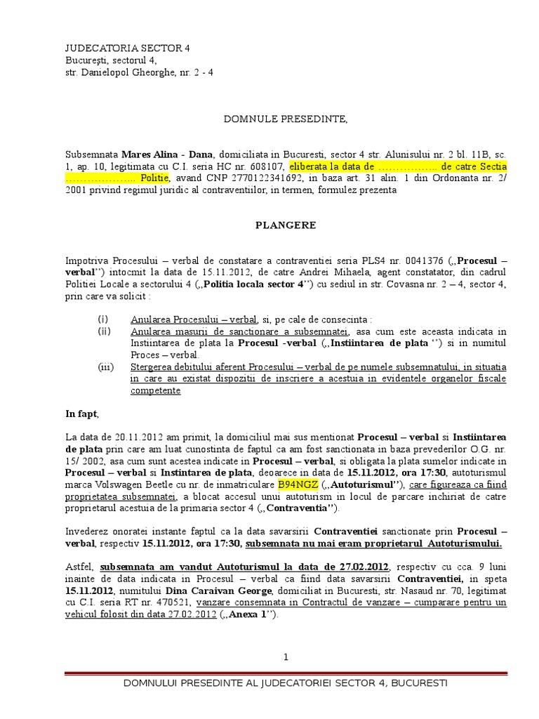 Contestatie Pv Amenda Parcare Mares Alina Dana