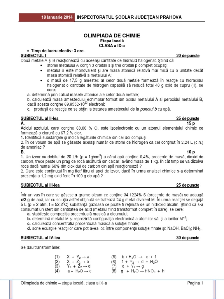 Olimpiada Chimie Etapa Locala Cls Ix S