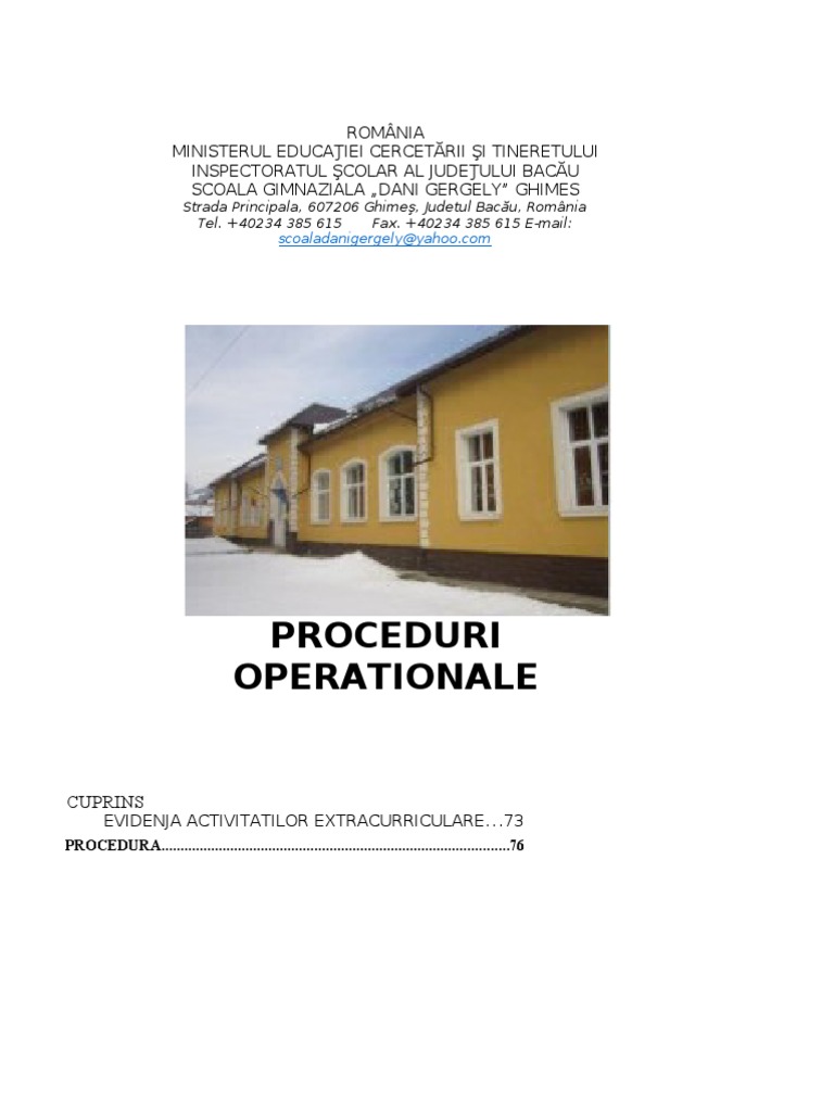 Modele De Proceduri Operationale Scoala Gimnaziala Nr 1 Dumbrava Rosie Neamt