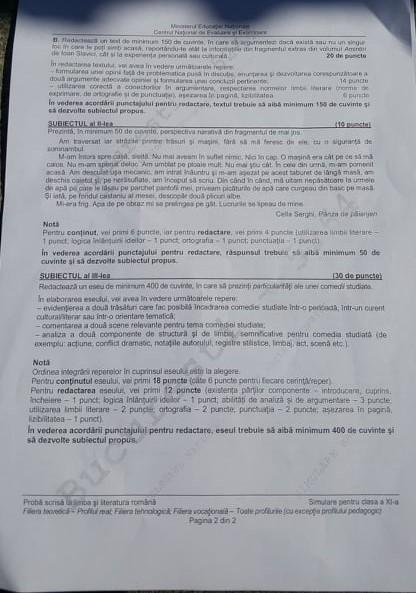 Subiecte Simulare Bac 2019 Clasa A Xi A Limba Romană Ce Pică