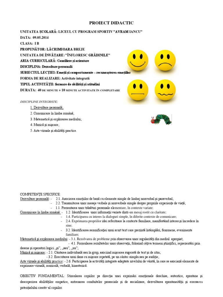 Proiect Proiect De Lectie Emotii Si Sentimente Pedagogie 377473