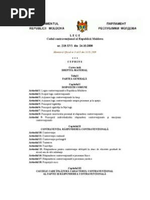 Lege Codul Contravenţional Al Republicii Moldova Nr 218 Xvi Din 24 10 2008