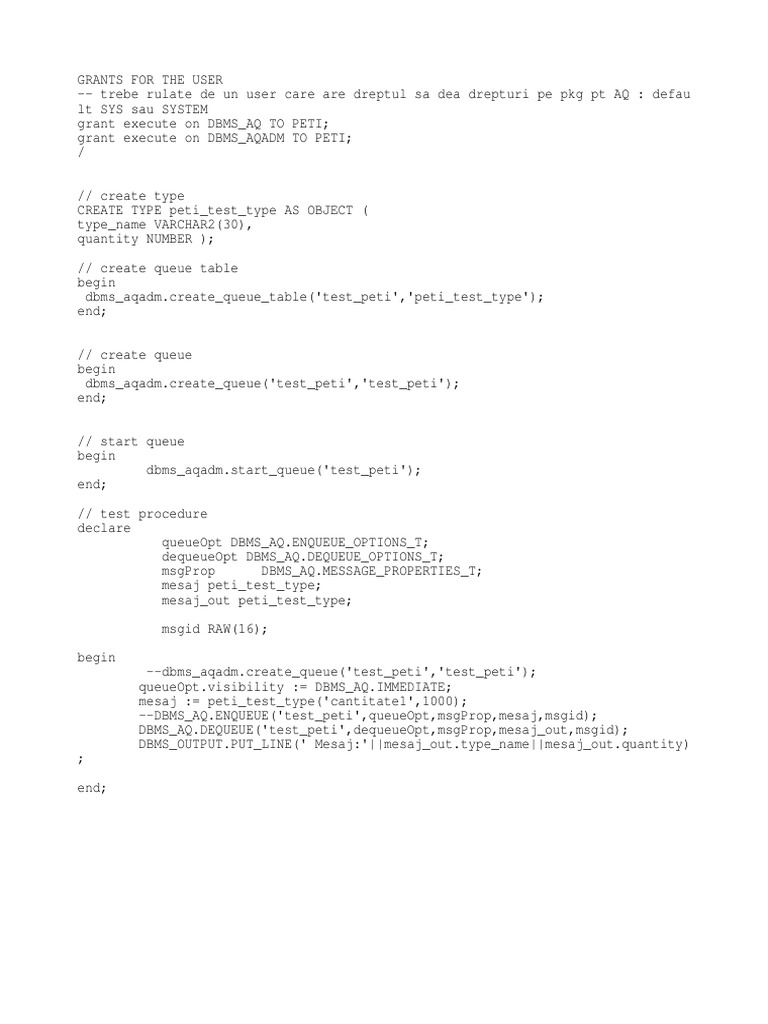 Using Objects And Aq In Oracle