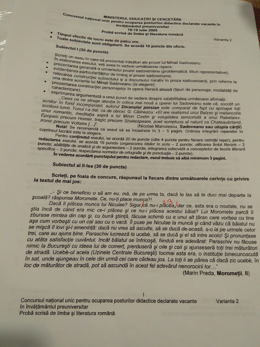 Comunitatea Didactică Titularizare 2005 Subiecte Limba și Literatura Romană