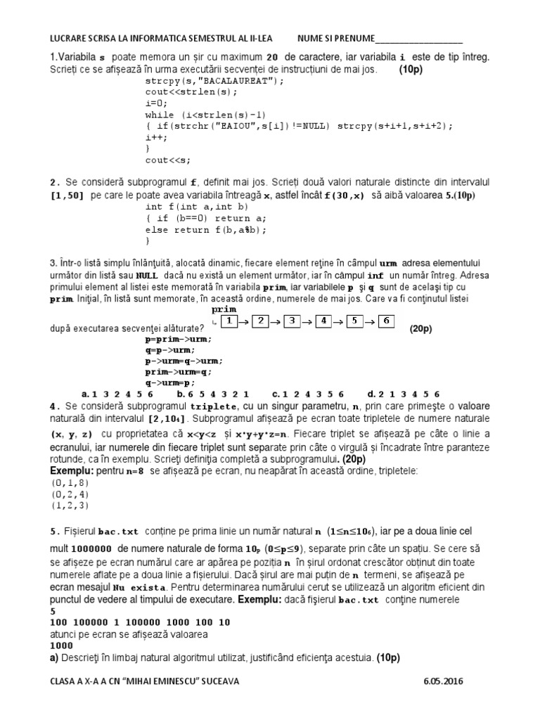 Subiecte De Teza Pentru Clasa A X A Semestrul I Profil Neintensiv Limbaj Turbo Pascal Info Ten Blog