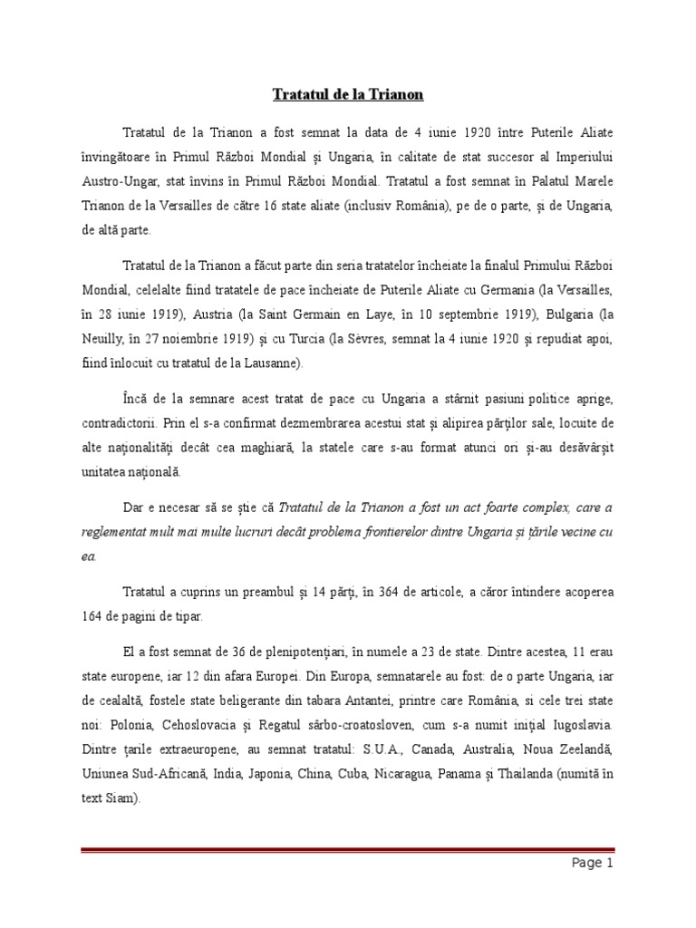 Tratatul De La Trianon In Varianta Originală Tradusă La Dispoziția Oricărui Roman In Format Digital Editia De Dimineata